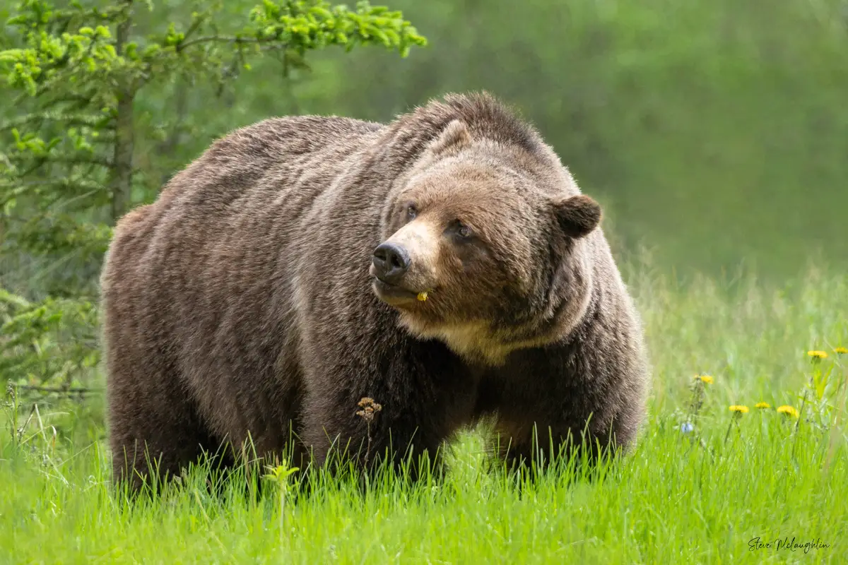 As Banff National Park’s most famous grizzly, The Boss is known for surviving being struck by a train, fighting with rival bears, and commanding a home range of over 1500 square kilometers. Estimated to be around 25-27 years of age in 2025, he is thriving beyond the typical lifespan of grizzly bears in the wild.